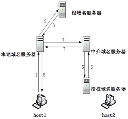 主机host1对host2进行域名查询的过程如下图所示,下列说法中