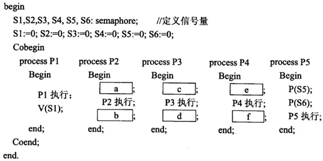 若用PV操作控制这5个进程的同步与互斥,程序如下: