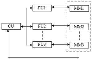 某计算机系统的结构如下图所示,按照弗林(Michael J.Flynn)提出的分类法,它属于(17),其中,PUi(i=1,…,n)为处理单元,CU 为控制部件,MM j(j=1,…,n)为存储部件。该计算机(18)。