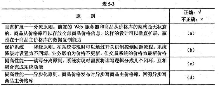 在设计实现商品实时价格查询业务流程时,项目组的分析师王工向系统设计师和实现人员提出了一些原则,请分析并判断这些原则的正确性,将应填入表5-3中(a)~(d)处的解答写在答题纸的相应栏内。