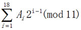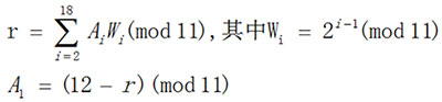 设i(i=1,…,18)表第二代身份证号从右到左的编号,Ai(i=2,…,18)表示身份证号第i位上的数字,则A1校验位上的数字可以按如下方法计算(注意所有计算均在模11下进行):