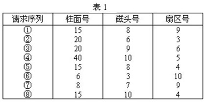 当进程请求读磁盘时,操作系统(48)。假设磁盘每磁道有10个扇区,移动臂位于18号柱面上,且进程的请求序列如表1所示。那么,最省时间的响应序列为(49)。