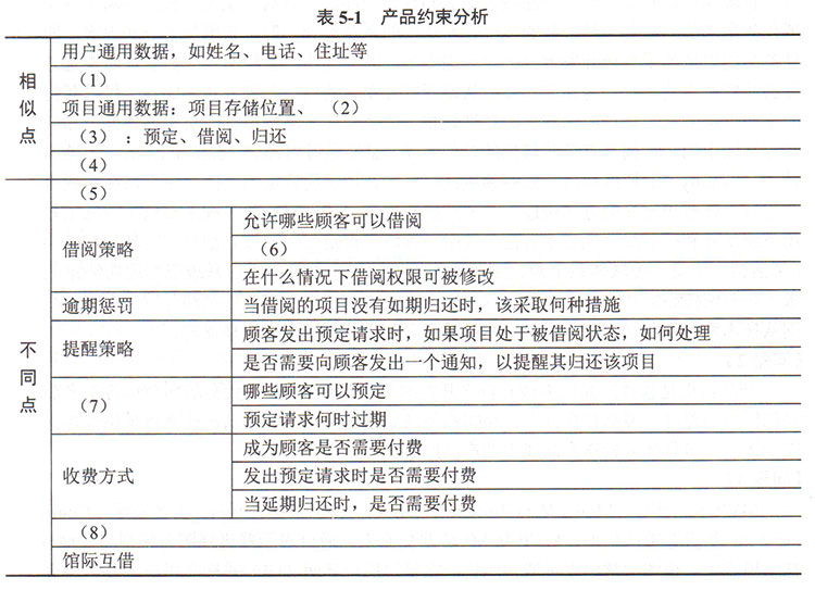 (a)项目当前状态;(b)项目操作;(c)预定策略;(d)会员分类;(e)借阅项目数量;(f)项目的类型和属性;(g)检索功能;(h)与支付相关的用户信息;(i)图书编号;(j)教师;(k)学生