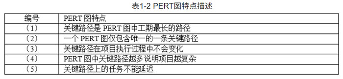 PERT图采用网络图来描述一个项目的任务网络,不仅可以表达子任务的计划安排,还可以在任务计划执行过程中估计任务完成的情况。针对表1-2中关于PERT图中关键路径的描述(1)〜(5),判断对PERT图的特点描述是否正确,并说明原因。