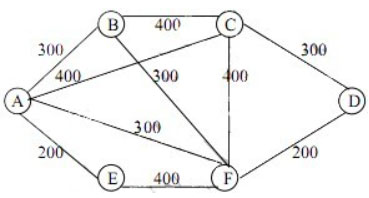 【58-59】下图标明了六个城市(A~F)之间的公路(每条公路旁标注了其长度公里数)。为将部分公路改造成高速公路,使各个城市之间均可通过高速公路通达,至少要改造总计