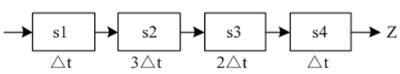 某4级流水线如下图所示,若每3Δt向该流水线输入一个任务,连续输入4个,则该流水线的加速比为